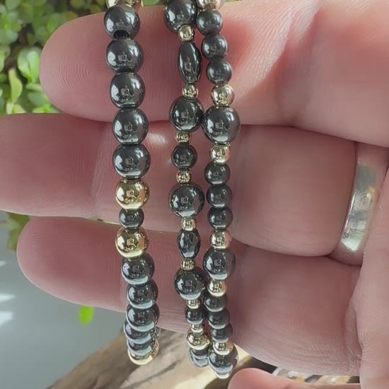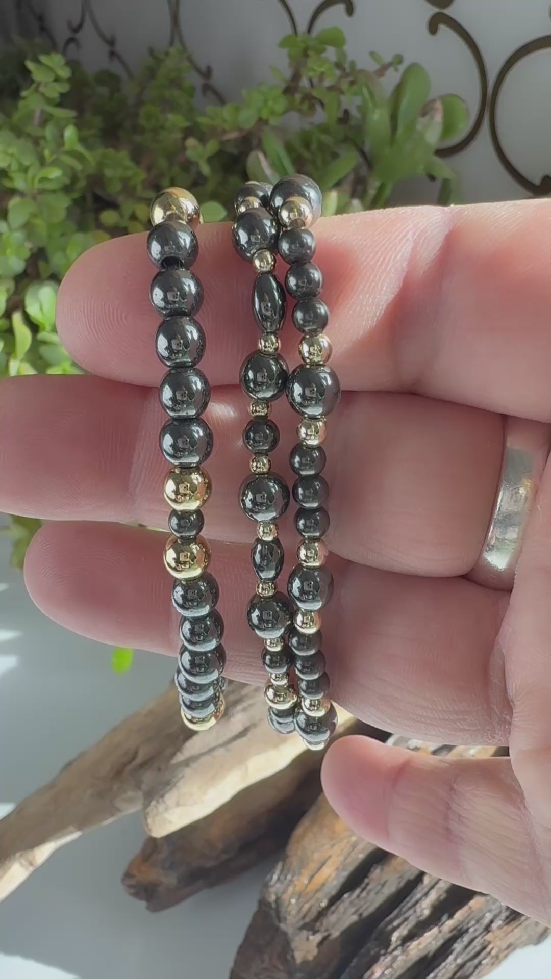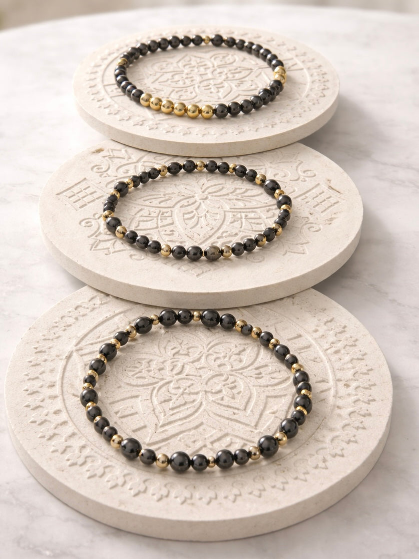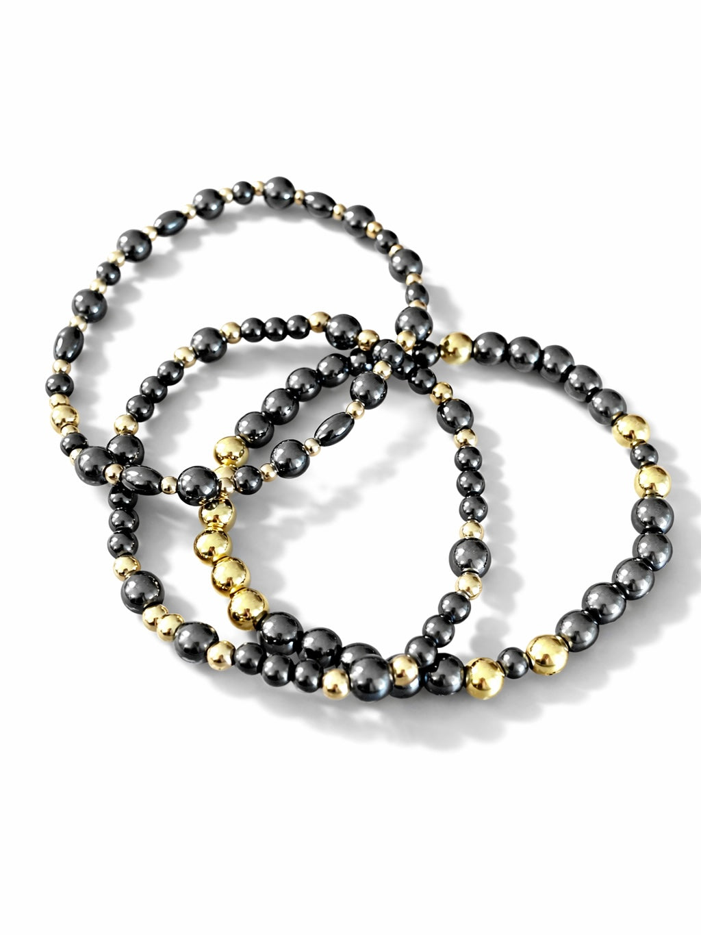 A thoughtfully designed bracelet stack featuring Hematite, chosen for its rich, reflective depth and naturally weighted feel. Designed to be worn daily — together or separately — this three-bracelet set offers a clean, grounded look with quiet strength and modern polish.