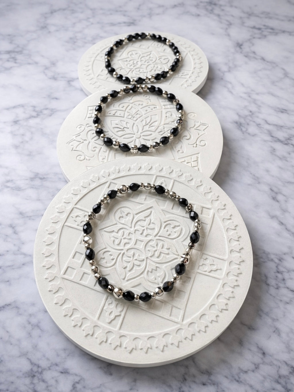 A thoughtfully designed bracelet stack featuring Black Striped Agate, chosen for its depth, polish, and timeless presence. Designed to be worn daily — alone or layered — this stack brings quiet confidence and effortless polish to whatever the day holds.