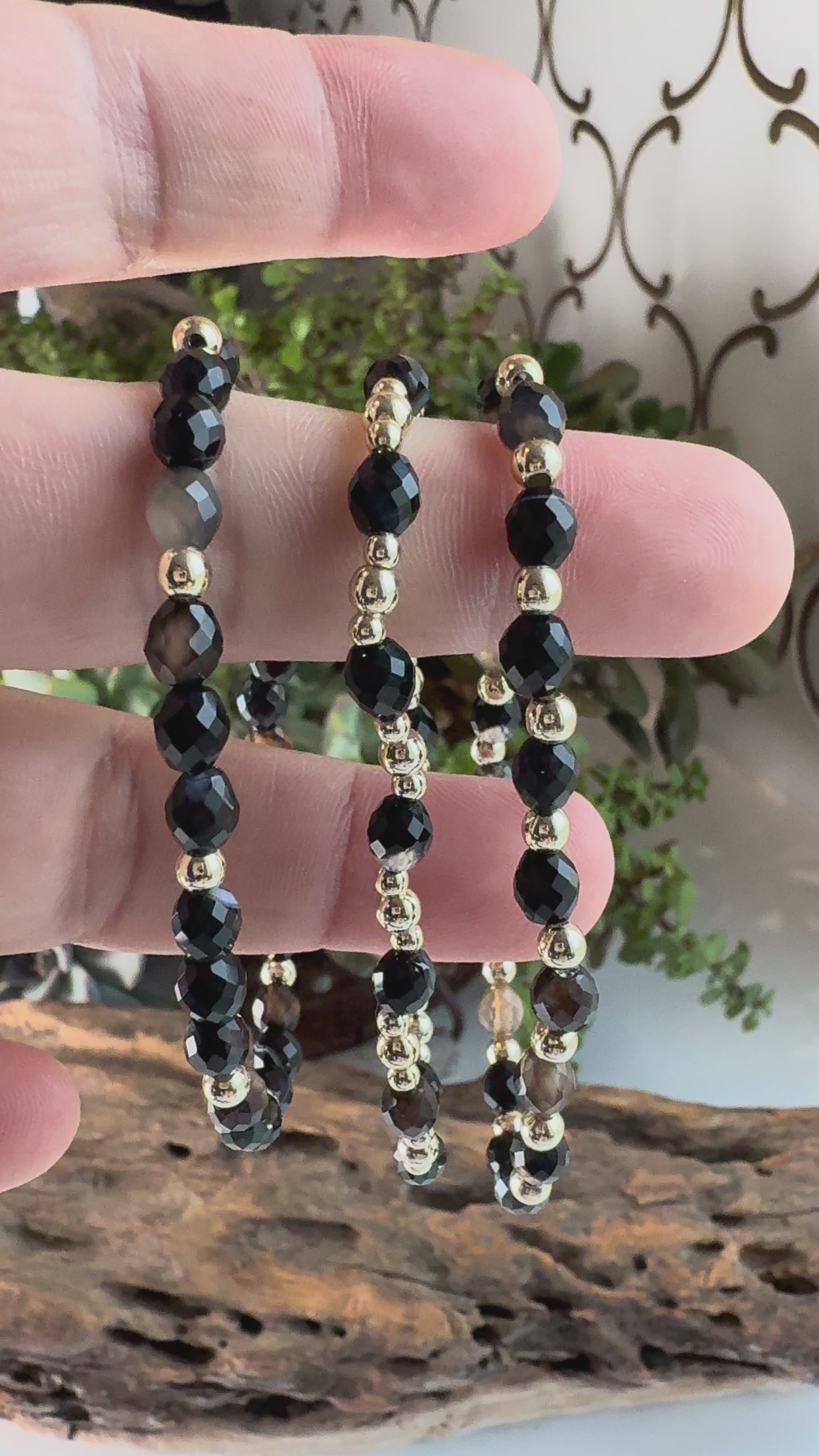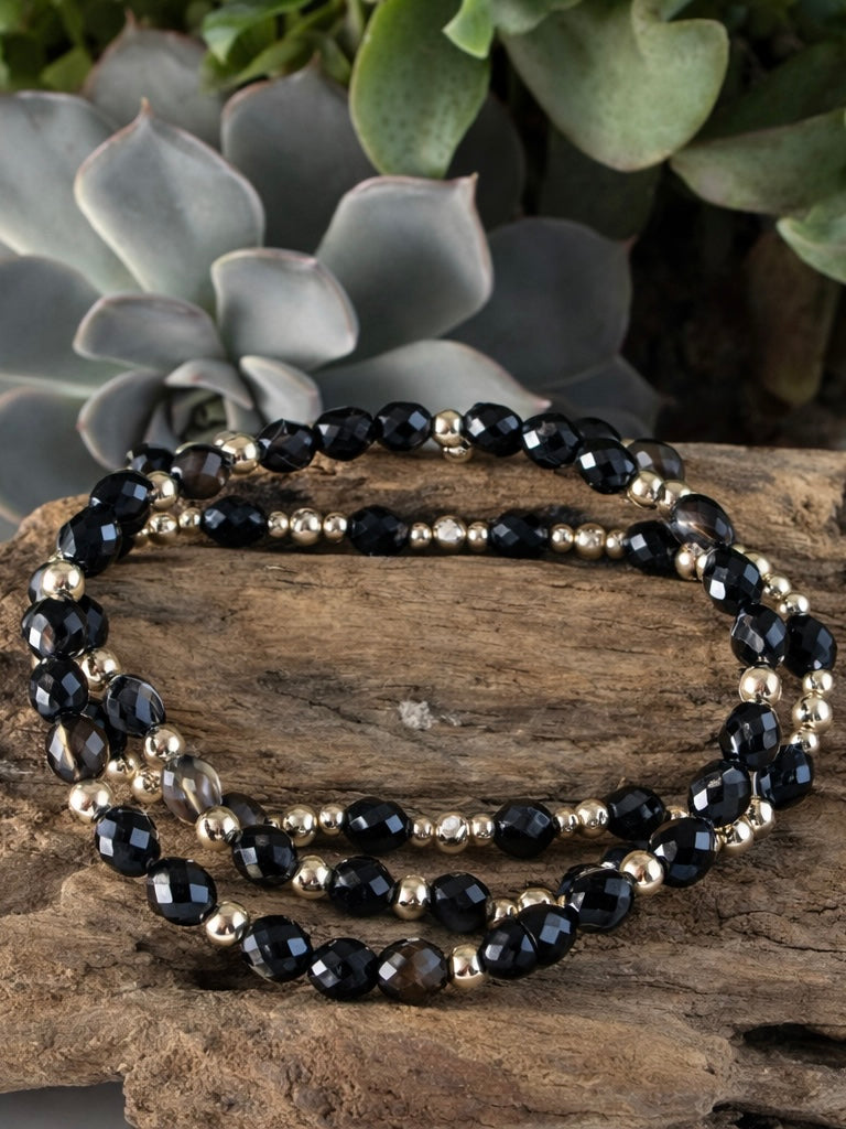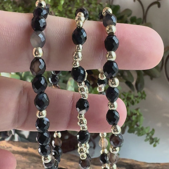 Each bracelet is hand-assembled in our studio using faceted natural gemstone beads paired with gold-filled accents. The faceting adds subtle texture and light play, giving the stack a refined edge without feeling flashy.