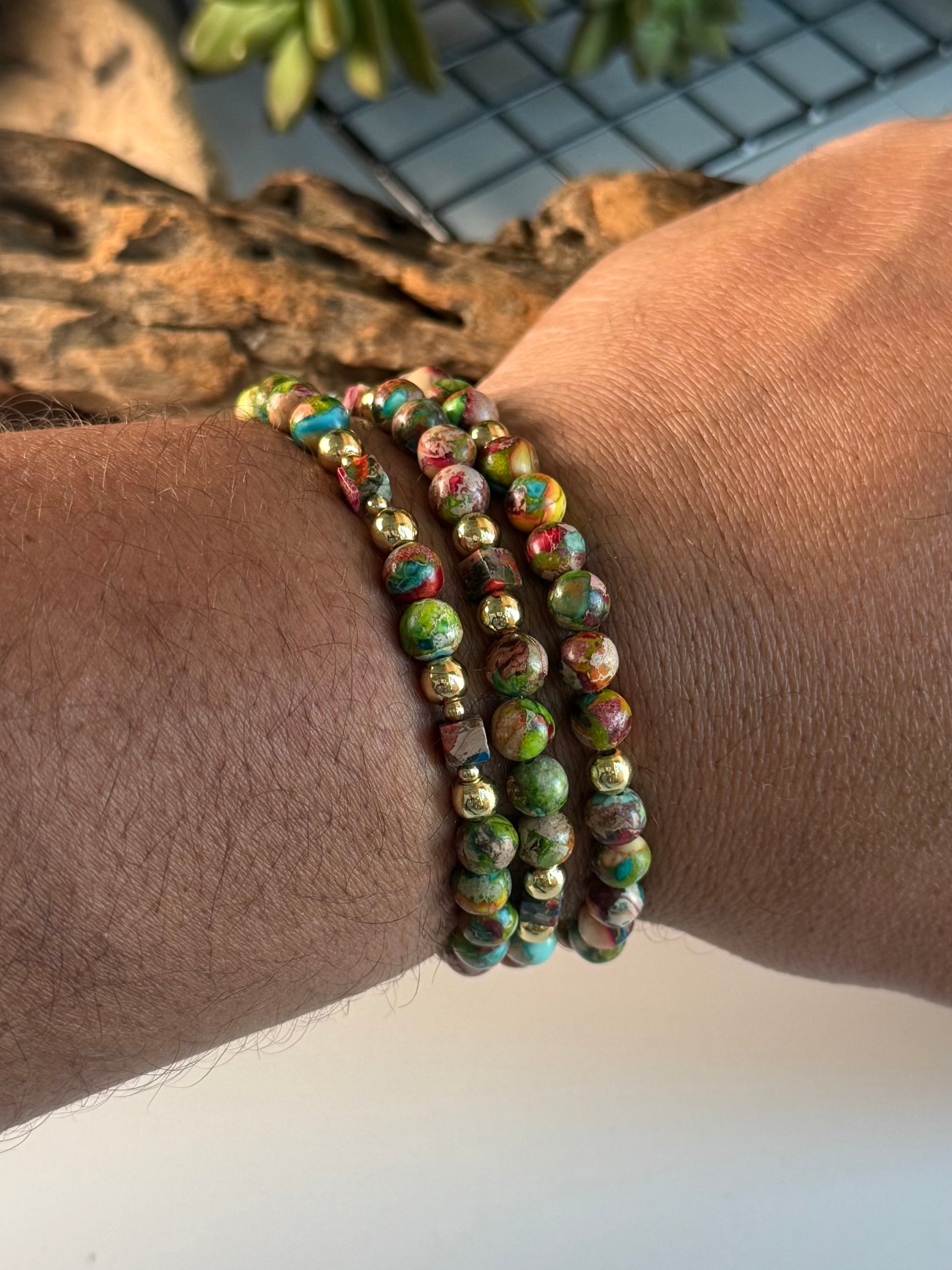 A thoughtfully designed bracelet featuring Impression Jasper, chosen for its rich color variation and organic, one-of-a-kind character. Designed to be worn daily — alone or layered — this piece brings quiet confidence and effortless polish to whatever the day holds.